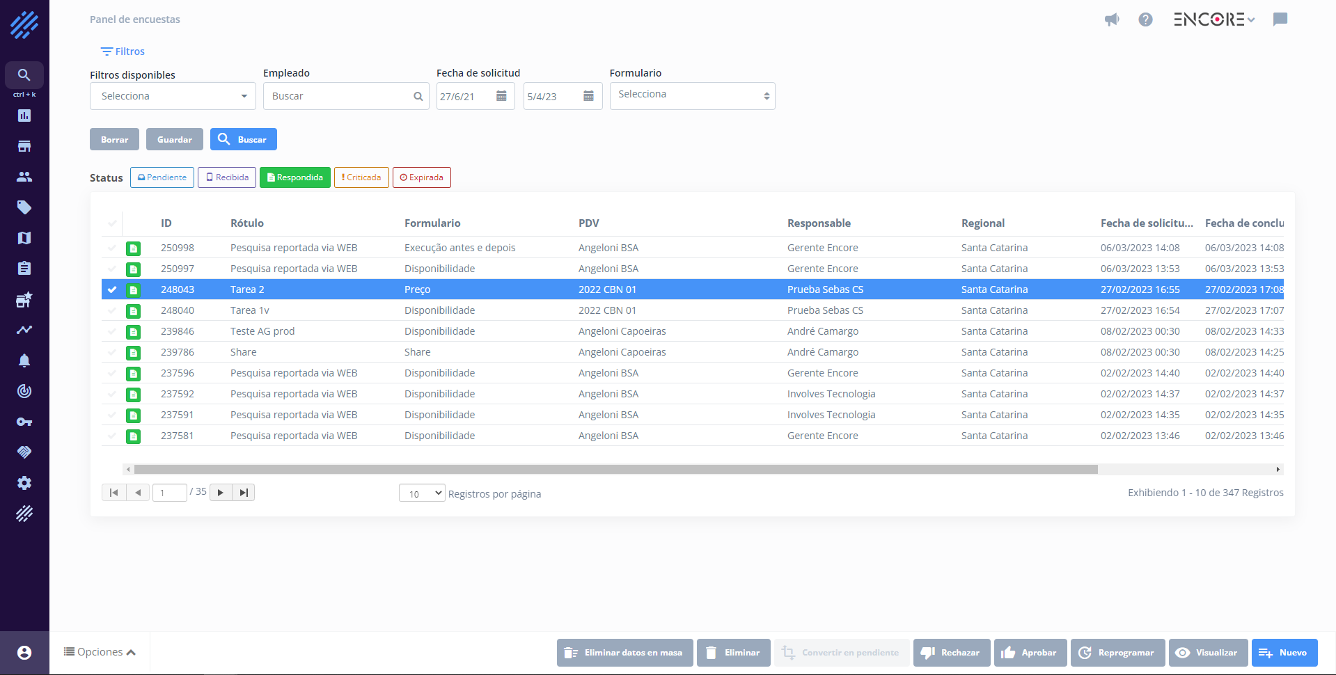 Atención: El estado de homologación - pendiente, aprobado o desaprobado - no impactan los informes de encuestas ni generan notificaciones en el sistema, solo ayudan en el control de la operación.