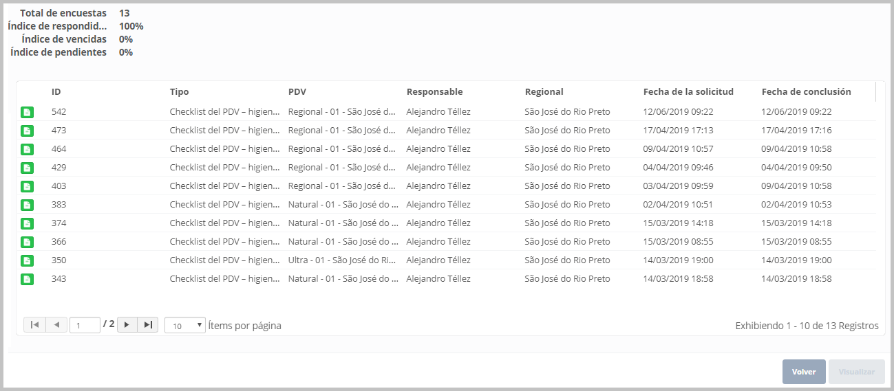 La nueva página presenta los datos de las tareas. Al lado de cada tarea podrás verificar su situación, pasando el cursor sobre el status.