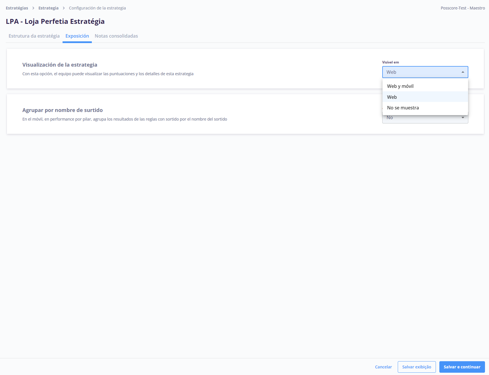 - Seleccione el tipo de visualización que desea: Web y móvil, Web y No se muestra;