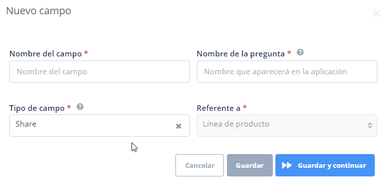 - Tipo de campo, seleccionando la opción Share