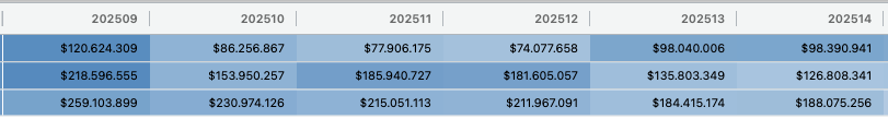 - Los colores más claros o cercanos al blanco representan menor venta.