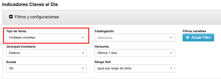Debes cambiar el tipo de venta a "Unidades vendidas" para ver el inventario expresado en unidades dentro del reporte.