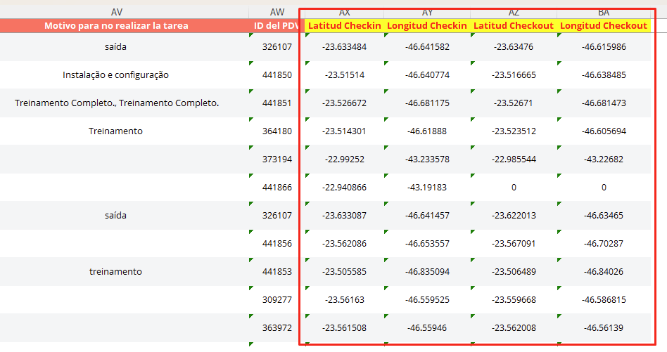 Atención: La coordenada de check-in/out no comprueba que el colaborador estuvo en el PDV. La funcionalidad que comprueba la presencia del colaborador dentro del radio del PDV es el Check-in GPS. |