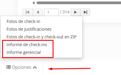 Las coordenadas de check-in/out están disponibles en el Informe Gerencial y en el Informe de Check-in que se encuentran en el Panel de Búsquedas.