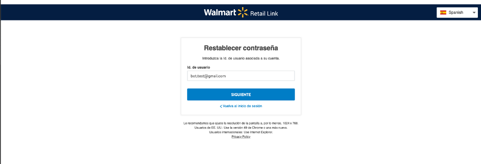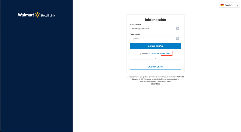 Si necesitas cambiar la contraseña de la cuenta BOT, sigue estos pasos desde la pantalla de inicio de sesión de Retail Link: