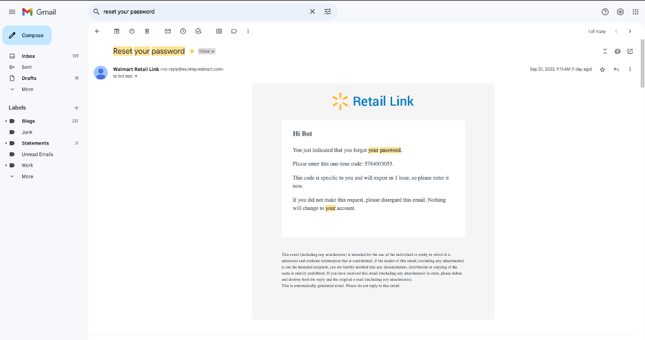 Como parte del EULA (Acuerdo de usuario de Retail Link), Walmart tiene el derecho de modificar el proceso de inicio de sesión en cualquier momento. La autenticación basada en tokens es una mejora de seguridad incluida en ese proceso.