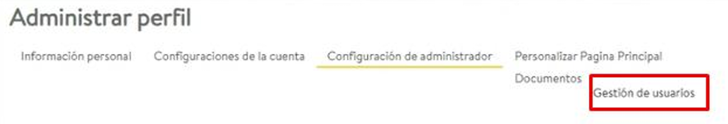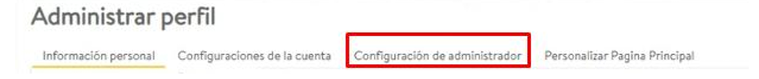 - Dentro de "Administrar perfil", selecciona la pestaña Configuración de administrador.