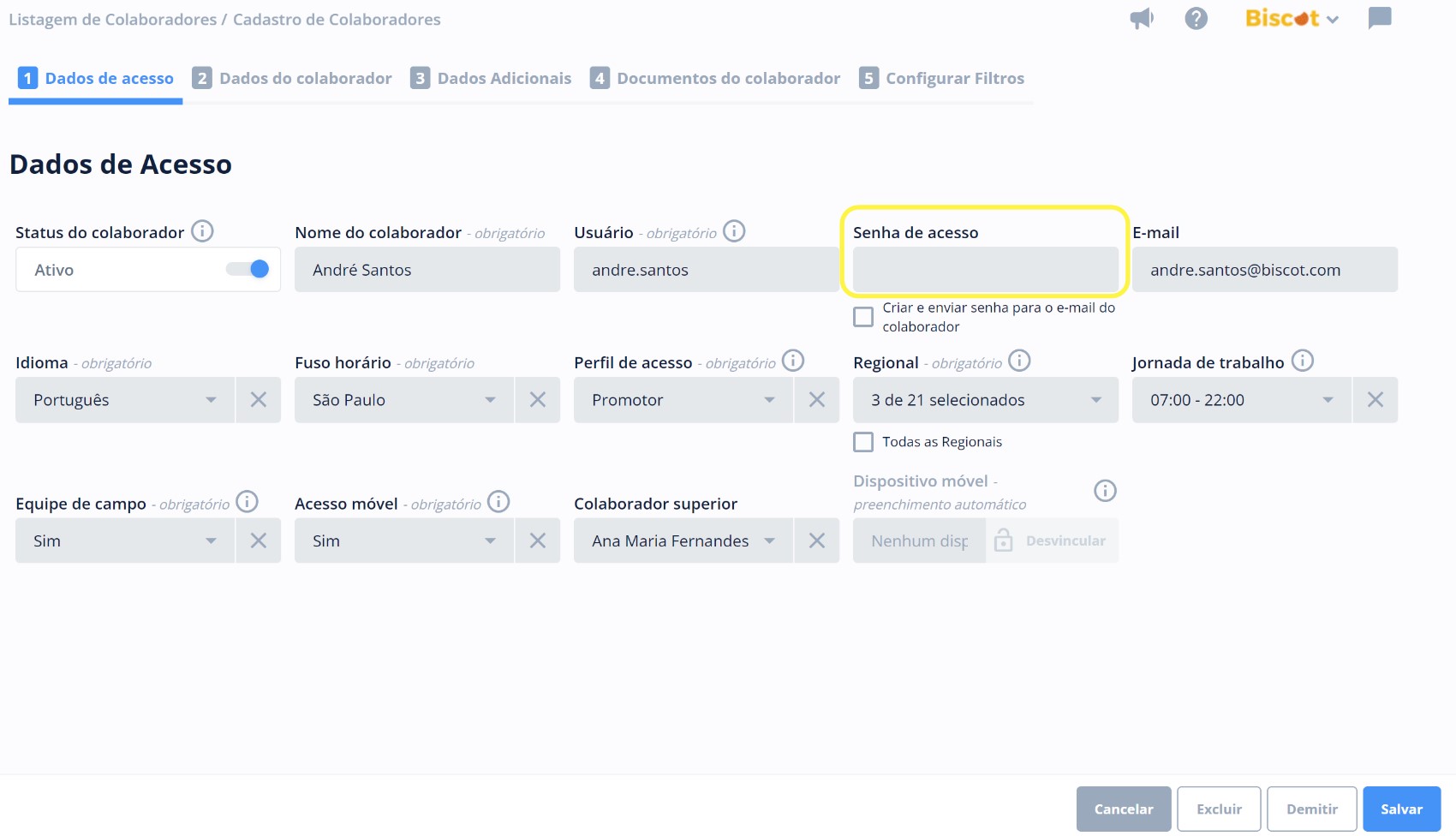 - Caso seu usuário esteja correto, peça que o supervisor crie uma senha nova ou cadastre a sua senha novamente. Algumas vezes pode ser que esteja digitando algo errado, ou no momento de gerar a senha o supervisor tenha digitado errado também.