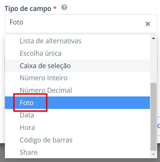 - Criar mais um campo no questionário do formulário relacionado a foto e que também possua sua referência com o mesmo objetivo do formulário.