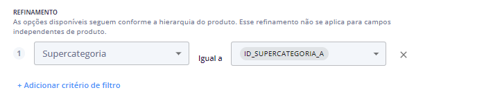 Passo 4: Ainda, você pode fazer refinamentos em seu filtro se o campo utilizado for de hierarquia de produto.