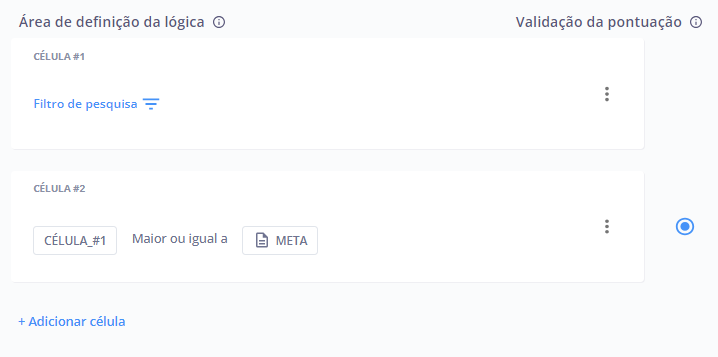 Passo 1: Caso você tenha selecionado o tipo de lógica individual, ao adicionar uma nova célula, selecione o operador filtro disponível nos operadores. Caso você esteja criando um tipo de lógica de sortimento, primeiramente você deverá fazer o critério de sortimento.