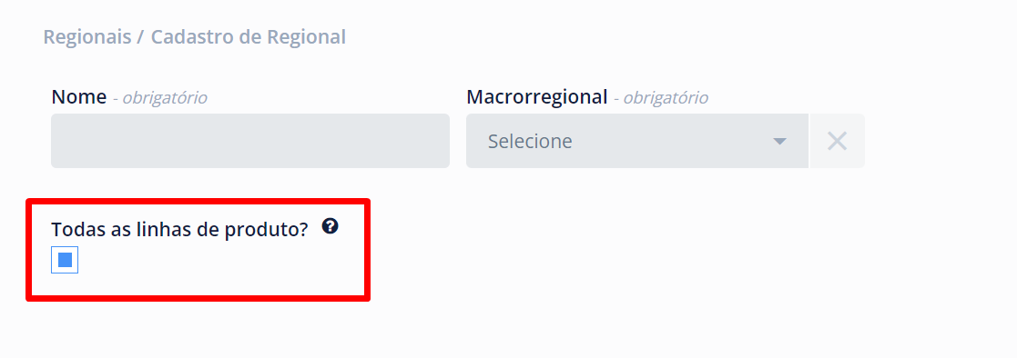 - Selecione quais Linhas de Produto serão relacionados nesta regional;