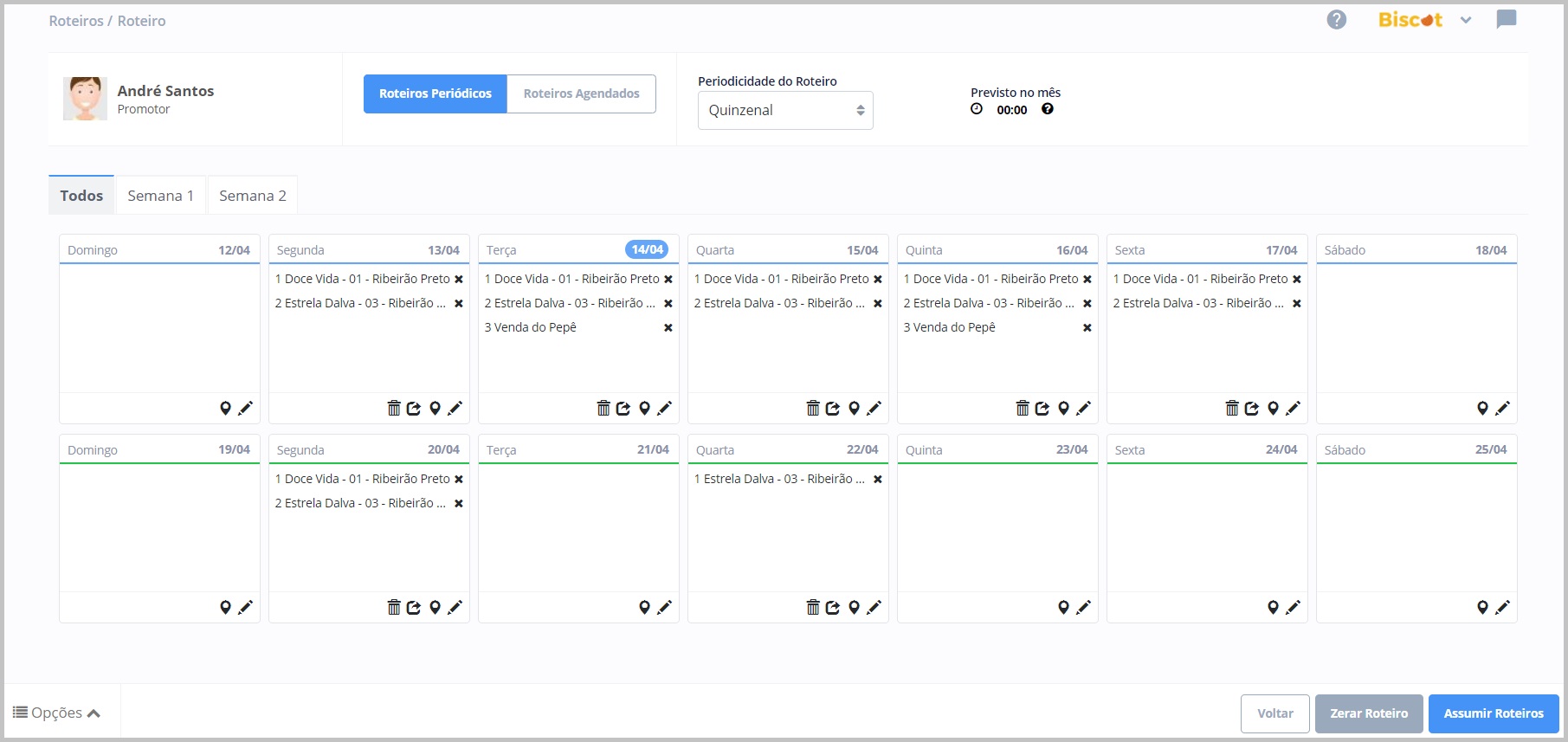 - Selecione os pontos de venda que farão parte de cada dia do roteiro.