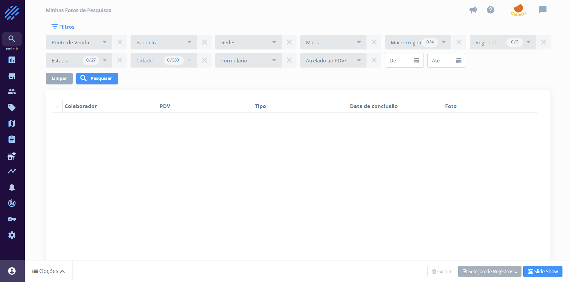 - Após entrar no sistema, acesso o caminho Menu > Pesquisas > Minhas Fotos de Pesquisas.