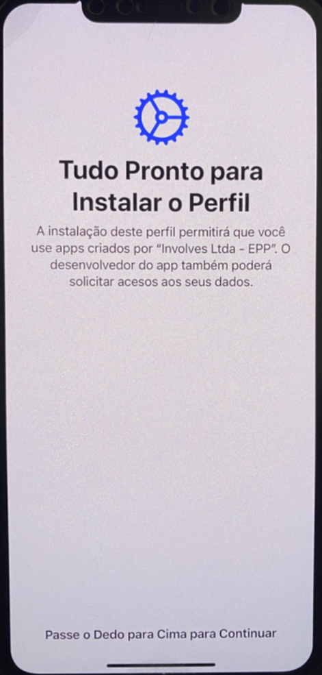 - Em seguida aparecerá a tela Tudo Pronto para Instalar o Perfil, passe o dedo para cima para continuar;