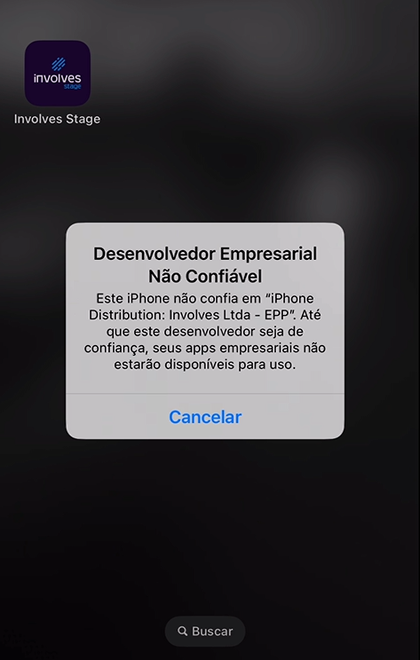 - Desenvolvedor empresarial não confiável ao instalar o Involves Stage App