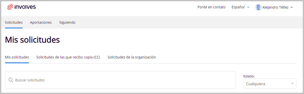 Solicitações da organização → todos os tickets da sua empresa (se você tiver permissão para visualizá-los).