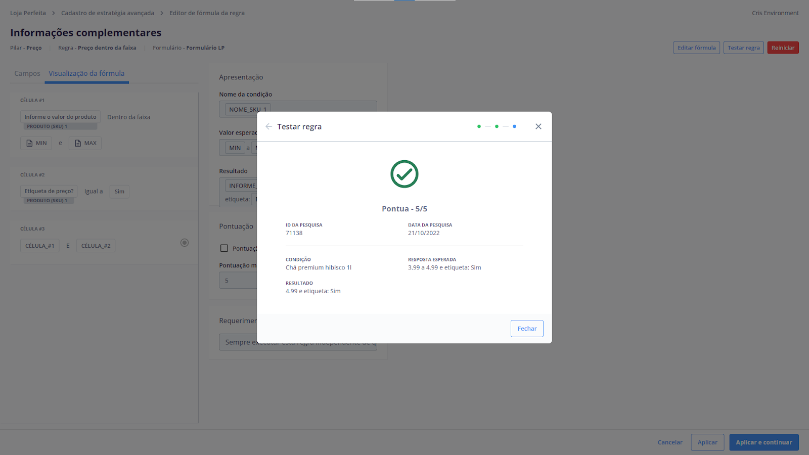 Uma vez testada a regra, basta clicar em Salvar para que todas as configurações criadas até aqui fiquem salvas.