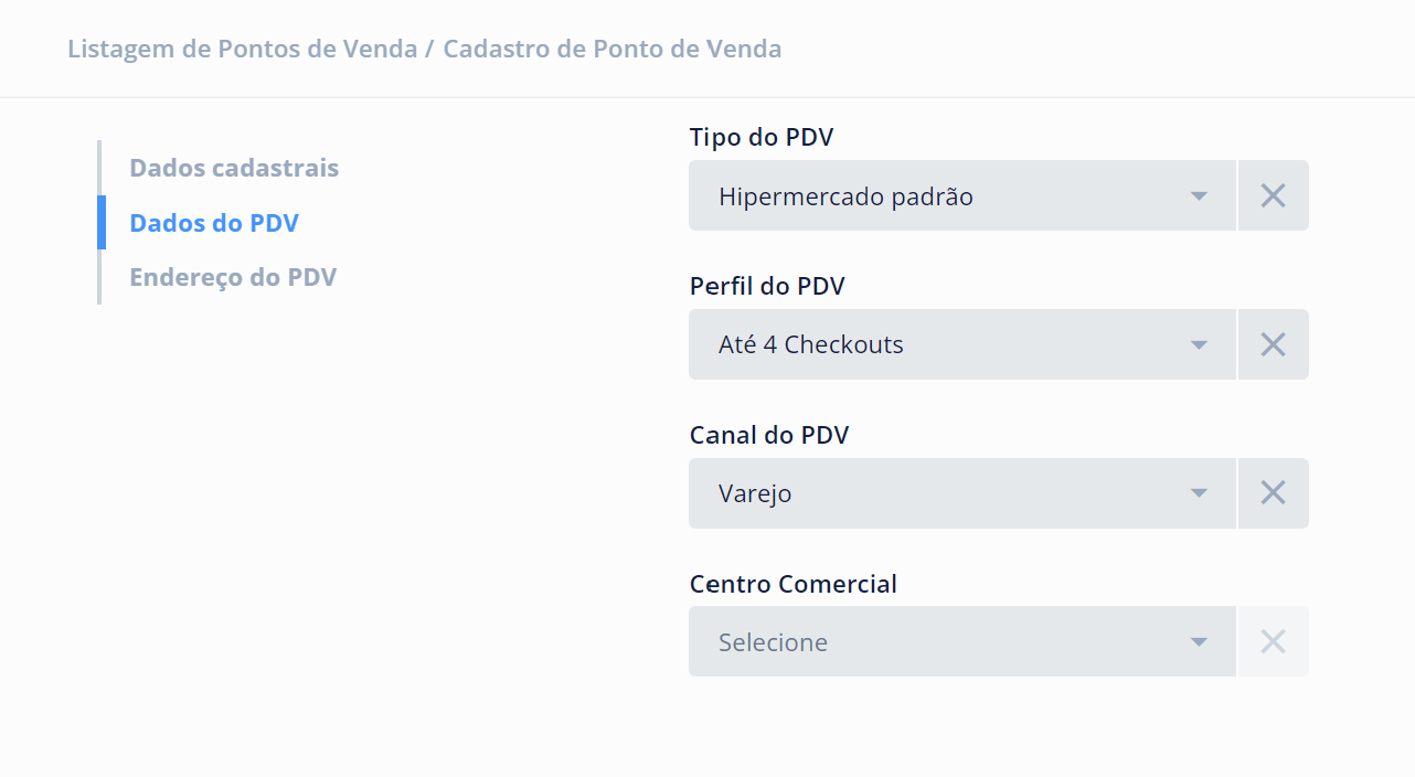 Para isso, siga o caminho: Menu> Cadastro de Ponto de Venda> Dados do PDV no Involves Stage Web
